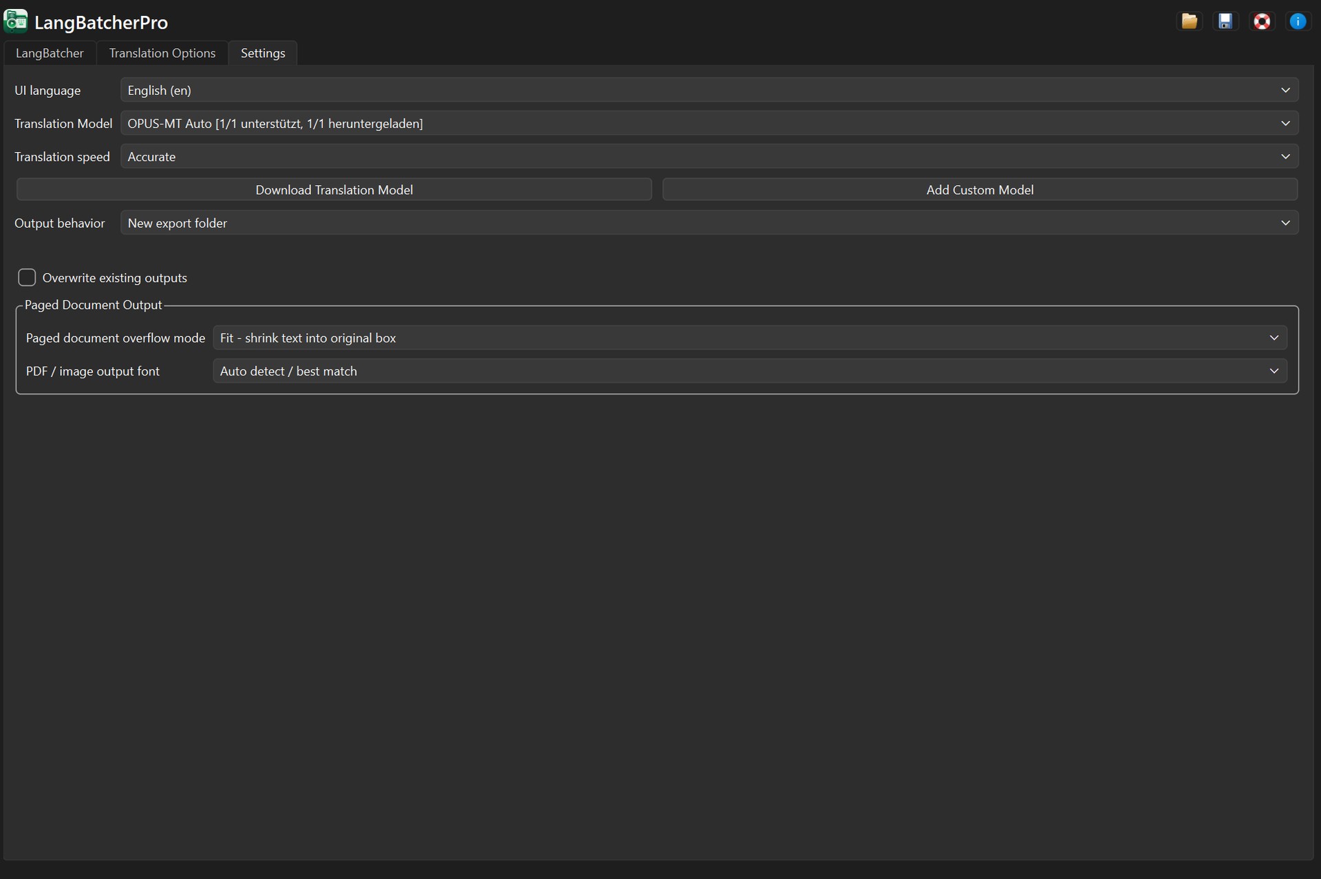 LangBatcher kombiniert mehrere Übersetzungs- und Schutzmechanismen in einer einzigen Oberfläche: